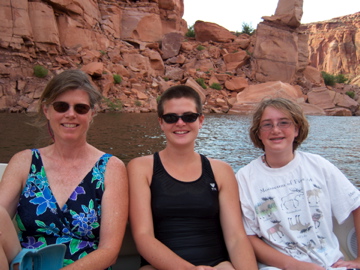 Carolyn and I just returned from a week with my family at Lake Powell – that ecological abomination in the desert. It was a real treat to get to see everyone for a few days – aunts, uncles, friends, brothers, sisters, and a grandma – coming from all over the country. Like most Meyer vacations, we left more sore, tired, and bruised than we arrived. The highlight of the Lake Powell trip is the “dawn patrol.” This means getting up at 5:30 to throw yourself out of the ski boat while the water is still glassy smooth. Here are a few pictures for you.