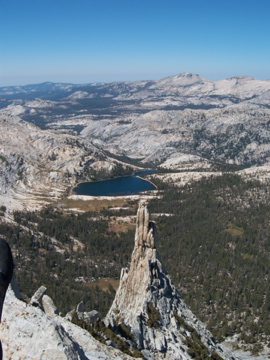Meanwhile, I was finishing up the summer’s responsibilities leading a group of college students through the Hoover (not quite yet) Wilderness. I finished up the trip and cleaned the gear with the rest of the Treks crew. Brad and I spent a day climbing Cathedral Peak and Eichorn’s Pinnacle in Yosemite. These are by far the two most dramatic summits I’ve ever placed myself upon–each is no bigger than a dinner table at the top. A few pictures for you: